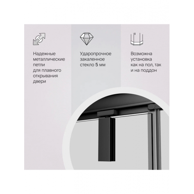 Душевое ограждение Gem с распашной дверью – легкая функциональная конструкция для стильного оформления душевой зоны в ванной комнате. Лаконичный дизайн и четко выверенные пропорции от собственного бюро AM.PM Design. Цвет профиля - черный матовый. Размер (Ш/Г/В): 900x900x1950 мм. Материал ограждения - прозрачное стекло; алюминий. Толщина стекла - 5 мм (стенка), 6 (дверка) мм. Форма - квадратная.