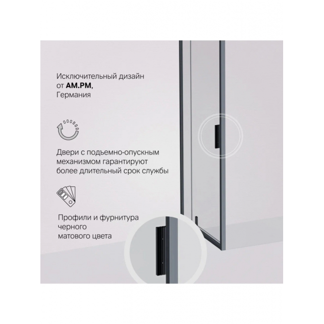 Душевой уголок AM.PM Gem 90 см. профиль черный, стекло прозрачное купить с доставкой. 100% Оригинал. Гарантия!