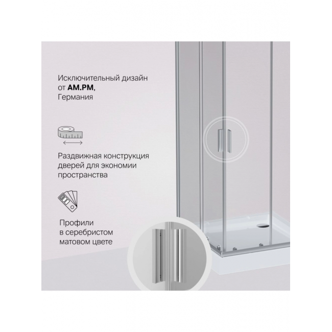 Душевой уголок AM.PM Gem 90 см. профиль хром, стекло прозрачное купить с доставкой. 100% Оригинал. Гарантия!