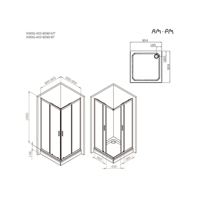 Идеальное сочетание профилей. Надежная фурнитура в цвет профиля от бренда AM.PM из коллекции Gem. Цвет профиля - серебристый. Размер (Ш/Г/В): 900x900x1950 мм. Материал ограждения - прозрачное стекло; алюминий. Толщина стекла - 6 мм. Форма - квадратная.
