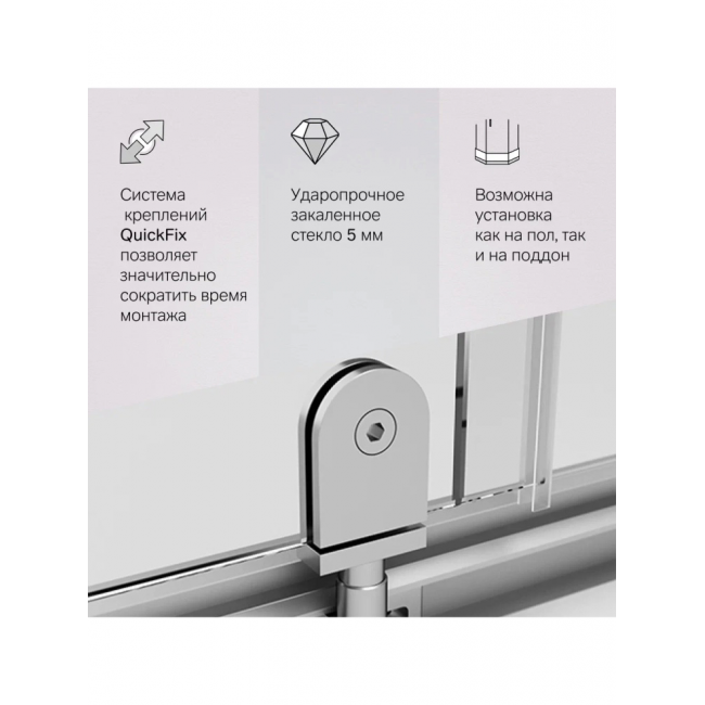 Легкая функциональная конструкция для стильного оформления душевой зоны в ванной комнате. Каждая деталь соответствует высоким требованиям к качеству и эргономике. Инновационная система креплений QuickFix позволяет значительно сократить время монтажа. Высота 1900 мм широкая входная зона и вместительное внутреннее пространство комфортны для людей любой комплекции. Двери ограждения оснащены металлическими роликами для плавного и бесшумного хода. В закрытом виде створки герметично блокируют мокрую зону избавляя от необходимости уборки ванной комнаты после принятия душа. Совместимо с душевым поддоном - артикул DX35WT-405-090MT. Приобретается отдельно.
