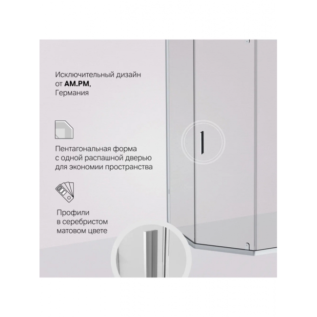 Душевой уголок AM.PM пятиугольный Gem 90 см. профиль хром, стекло прозрачное купить с доставкой. 100% Оригинал. Гарантия!