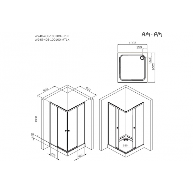 Надежные комплектующие, безупречный стиль и простой монтаж – все это про душевые ограждения AM.PM X-Joy. Тонкий контур окантовки, невесомый силуэт и отсутствие нижних профилей – продуманная функциональность от дизайн-бюро DanelonMeroni (Великобритания / Италия). Цвет профиля - серебристый. Размер (Ш/Г/В): 1000x1000x1950 мм. Материал ограждения - прозрачное стекло; алюминий. Толщина фиксированного стекла - 4 мм. Толщина стекла двери - 6 мм. Форма - квадратная.