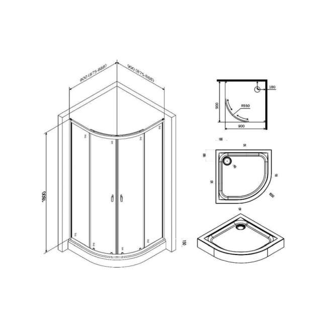 Душевой уголок размером 90х90 см создает впечатление легкой и невесомой конструкции. Внушительная высота профиля 1850 мм предотвратит попадание капель воды за пределы душевого уголка. Душевое ограждение помогает рационально использовать пространство в небольших ванных комнатах.