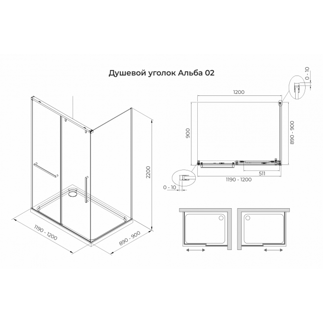- Удобство монтажа - возможность регулировки каркаса на 10 мм в случае неровности стен. Универсальность установки - душевые ограждения можно использования как с душевым поддоном, так и без него. Душевой поддон в комплект не входит.