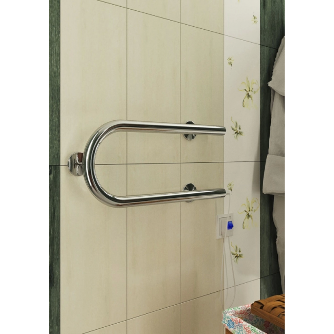 Электрические полотенцесушители П-образной формы считаются одними из наиболее простых моделей, однако они отлично справляются с функцией поддержания необходимого уровня влажности и тепла в ванной комнате. Кроме того, изделия предоставляют достаточно места для сушки небольших полотенец и влажных предметов одежды.