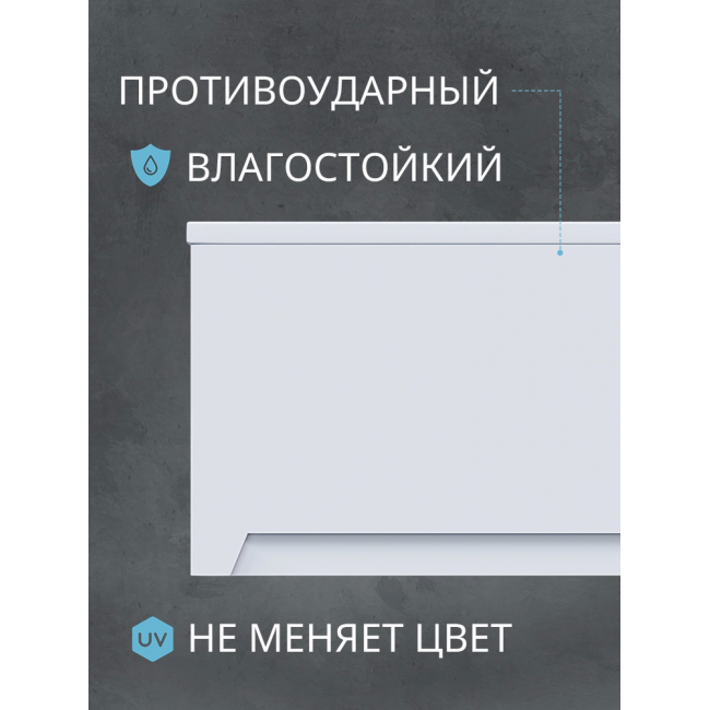 Фронтальная панель придает ванне Benneri завершенный вид, закрывает инженерные коммуникации. Экран изготовлен из высокопрочного противоударный полистирола с УФ-защитой. Легкий в уходе, сохраняет белизну на протяжении всего срока эксплуатации. Особенности: • Противоударный материал: Изготовлен из прочного полистирола, который устойчив к ударам и механическим повреждениям, что гарантирует долговечность и сохранность внешнего вида. • Эстетичный дизайн: Лаконичные линии и гладкая поверхность делают экран идеальным дополнением к любой ванной комнате, подчеркивая её стиль и элегантность. • Легкость в уходе: Гладкая поверхность легко очищается от загрязнений, что позволяет поддерживать идеальную чистоту без особых усилий. • Устойчивость к влаге: Материал, из которого изготовлен экран, исключает образование плесени и грибка, обеспечивая долговечность и гигиеничность. • Простота установки: Экран легко устанавливается и подходит для большинства стандартных акриловых ванн, что позволяет вам быстро обновить интерьер вашей ванной комнаты. • Продуманный дизайн: Специальная ниша в нижней части экрана предусматривает свободное пространство для ног и обеспечивает комфорт и удобство при использовании.