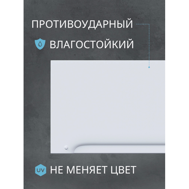 Экран придает ванне Benneri завершенный вид, закрывает инженерные коммуникации. Экран изготовлен из высокопрочного противоударный полистирола с УФ-защитой. Легкий в уходе, сохраняет белизну на протяжении всего срока эксплуатации.