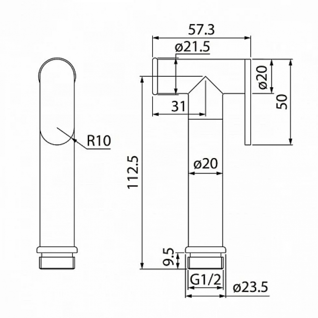 Гигиеническая лейка, 1 режим (Rain), диаметр 21,5 мм, хром, латунь. Упаковка:картонная коробка.