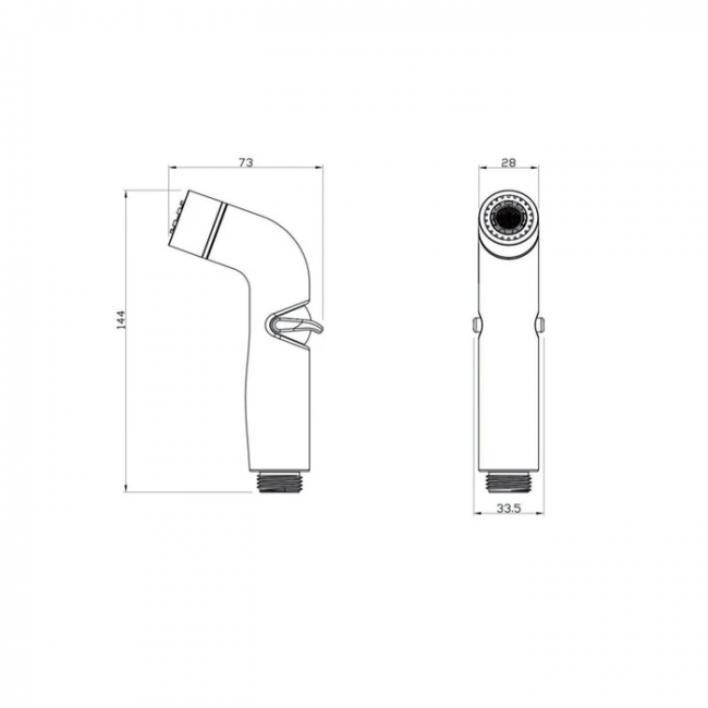 Гигиеническая лейка, 2 режима (Дождь и Аэроструя), диаметр 28 мм, размер 73х144 мм, хром, материал ABS-пластик. Переключение режимов осуществляется поворотом носика.