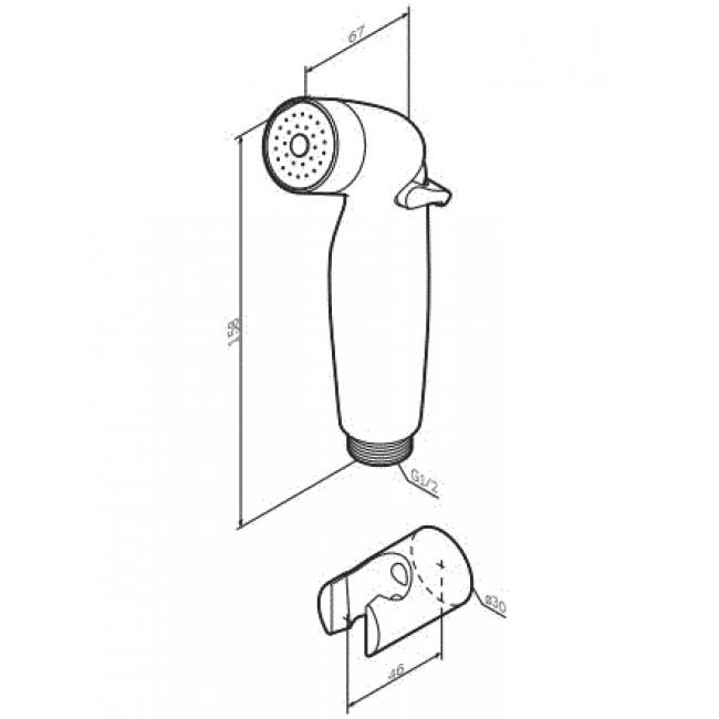 Держатель в комплекте отвечает за надежную фиксацию лейки и экономию пространства.