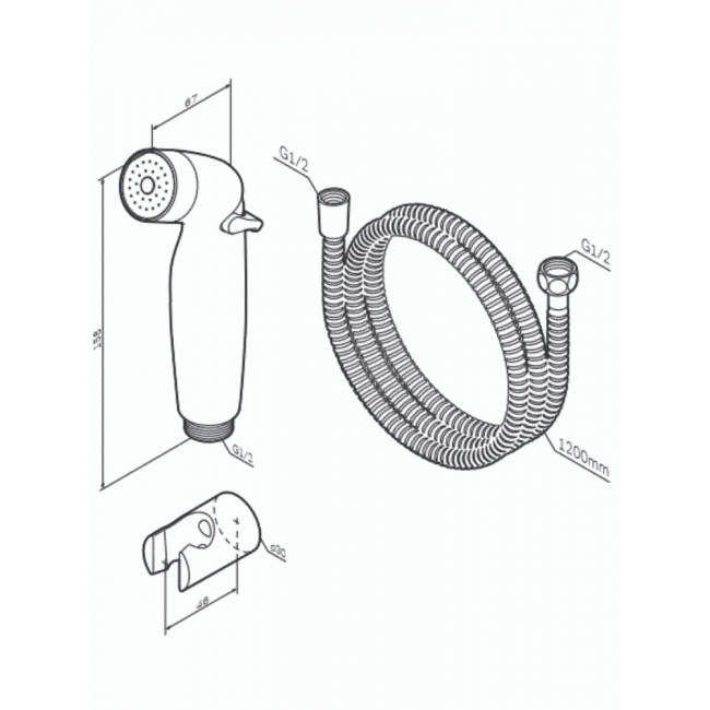 Гигиеническая лейка в комплекте с шланговым подсоединением-держателем и шлангом.