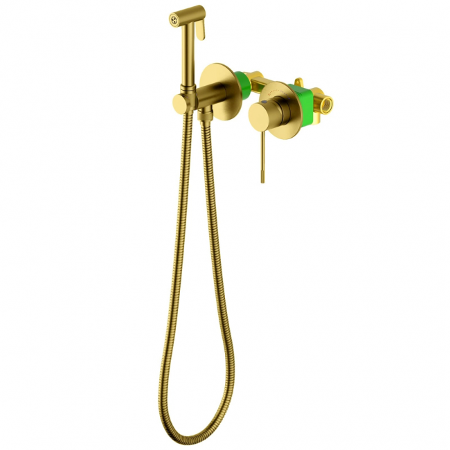 Цвет "шлифованное золото" имеет матовую, гладкую поверхность с легким блеском и более яркий оттенок, чем "матовое золото". Цвет натурального золота добавит роскоши в ванной комнате.Встраиваемый смеситель с гигиеническим душем Timo Saona 2339 предназначен для монтажа в твердой или полой стене. Термокартридж с защитой от ожогов ограничивает максимальную температуру воды 45 С° повышая комфортность и безопасность использования. Основной задачей данной модели является: экономия места (установка чаши для биде занимает достаточно много места и к тому же затратнее). Все коммуникации, крепления и механизмы спрятаны в стену и закрыты декоративными накладками, снаружи находится только рычаг управления смесителем и держатель гигиенической лейки с подключеним шланга, такая модель отлично сочетается с инсталляцией для унитаза. Длины шланга 1,2 метра хватает для решения гигиенических задач. Можно также использовать например, для мытья собаки после прогулки или наполнения ведра воды и т.д. Сложностей монтажа не возникает при установке смесителя опытным сантехником. Внимательно изучите инструкцию по монтажу и эксплуатации.Цвет "шлифованное золото" не оставляет отпечатков пальцев и других загрязнений на поверхности.