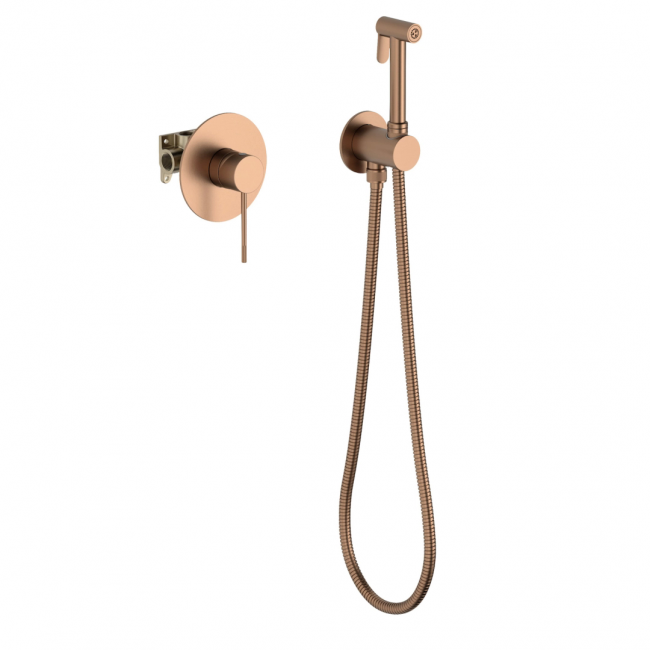 Цвет "розовое золото" является маркером стиля и элегантности. Мягкий оттенок придает дизайну ванной комнаты утонченности и сдержанности.Встраиваемый смеситель с гигиеническим душем Timo Saona 2389 предназначен для монтажа в твердой или полой стене. Основной задачей данной модели является: экономия места (установка чаши для биде занимает достаточно много места и к тому же затратнее). Все коммуникации, крепления и механизмы спрятаны в стену и закрыты декоративной накладкой, снаружи находится только рычаг управления смесителем и держатель гигиенической лейки с подключеним шланга, такая модель отлично сочетается с инсталляцией для унитаза. Длины шланга 1,2 метра хватает для решения гигиенических задач. Можно также использовать например, для мытья собаки после прогулки или наполнения ведра воды и т.д. Сложностей монтажа не возникает при установке смесителя опытным сантехником. Внимательно изучите инструкцию по монтажу и эксплуатации.Цвет "розовое золото" прост в уходе, не оставляет отпечатков пальцев и разводы от воды.
