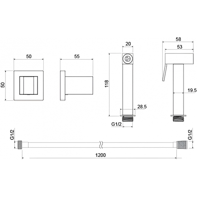 | Комплектация | 1. Держатель для душа 2. Шланг 120 см 3. Гигиеническая лейка |