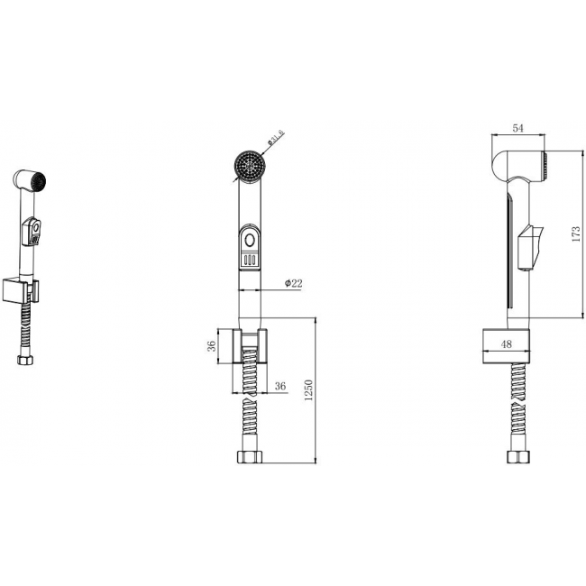 | Комплектация | 1. Держатель для душа2. Шланг 125 см3. Гигиеническая лейка |