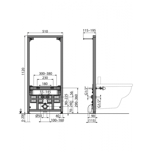 Инсталляция для скрытого монтажа подвесного биде. Рама высотой 1,12 м с регулируемыми ножками выполнена из металла, покрытого порошковой краской. Несущая способность — 400 кг. В комплектацию входят несущая рама и монтажный набор для крепления биде.
