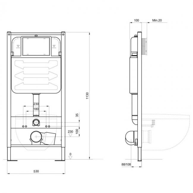 • инсталляции Benneri BE.53113.01. Это прочная монтажная рама из стального профиля 40*40 мм толщиной 1.5 мм и шириной 53 см, с усиленной траверсой толщиной 3мм. Инсталляция способна выдерживать нагрузку более 400 кг. Цельнолитой бачок скрытого монтажа, обшитый кожухом из пенопласта, защищает от конденсата и исключает возможность проточек.