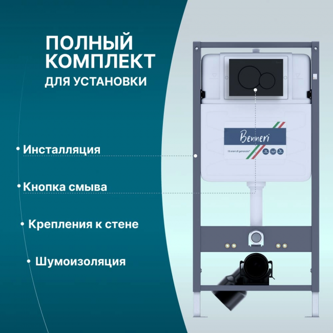 Инсталляция для подвесного унитаза 4в1 Benneri 530 BE53.019D черная матовая купить с доставкой. 100% Оригинал. Гарантия!