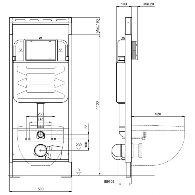 - Инсталляция совместима со смывными клавишами Geberit серии Sigma для механической системы смыва