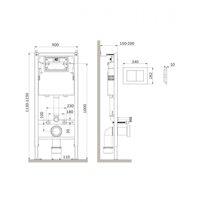 Инсталляция для подвесного унитаза бренда AM.PM коллекции PrimeFit с механическим управлением смыва включает в себя максимально полный комплект поставки: крепления, патрубки, звукоизолирующую прокладку, механическую двухрежимную клавишу смыва. Размер инсталляции(Ш/Г/В): 530x150-200x1130-1230 мм. Размер клавиши (Ш/Г/В): 240x10x162 мм. Цвет и материал: синий каркас из нержавеющей стали, белый бачок из ABS-пластика, механическая клавиша белая глянцевая. Форма кнопок: прямоугольные.