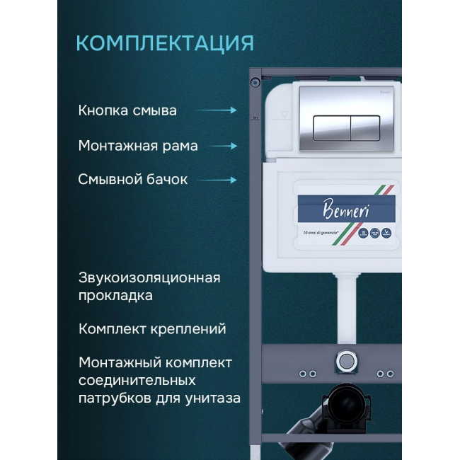 Инсталляция для подвесного унитаза с клавишей Benneri BE54.015B купить с доставкой. 100% Оригинал. Гарантия!