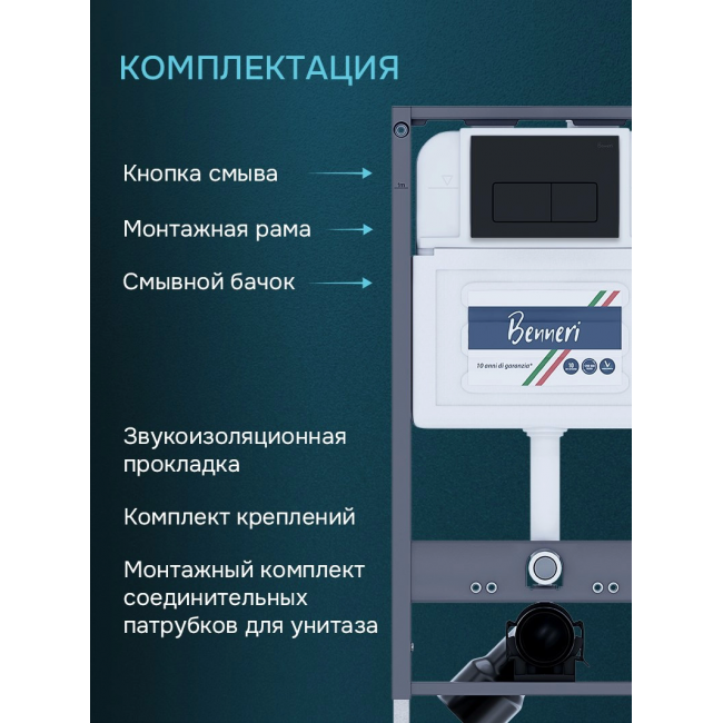 Инсталляция для подвесного унитаза с клавишей Benneri BE54.015D купить с доставкой. 100% Оригинал. Гарантия!