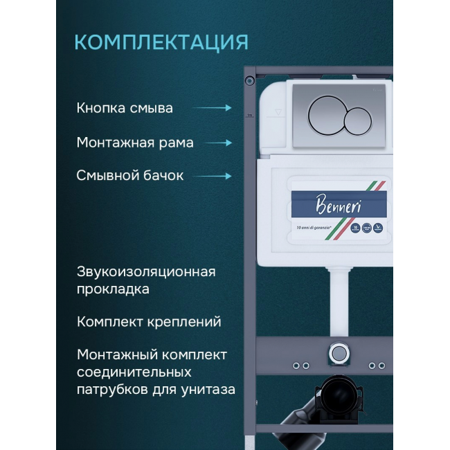 Инсталляция для подвесного унитаза с клавишей Benneri BE54.019C купить с доставкой. 100% Оригинал. Гарантия!