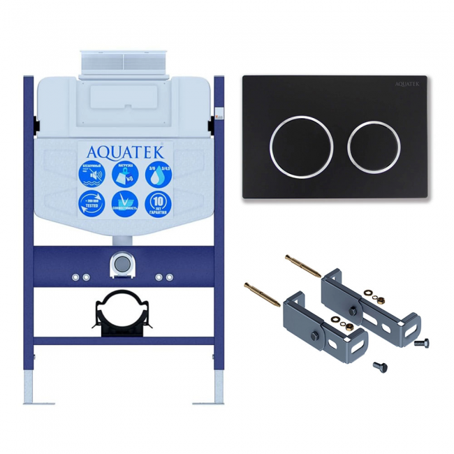 Инсталляция для подвесного унитаза с верхней кнопкой смыва Aquatek INS-0000018, кнопка смыва черная + крепеж купить с доставкой. 100% Оригинал. Гарантия!