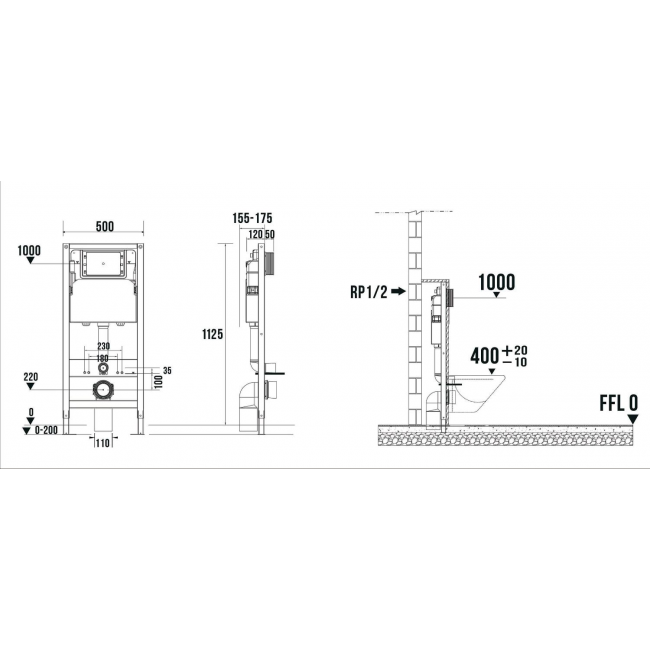 *Регулируемые ножки 0-200 мм позволяют установить инсталляцию на необходимую высоту.