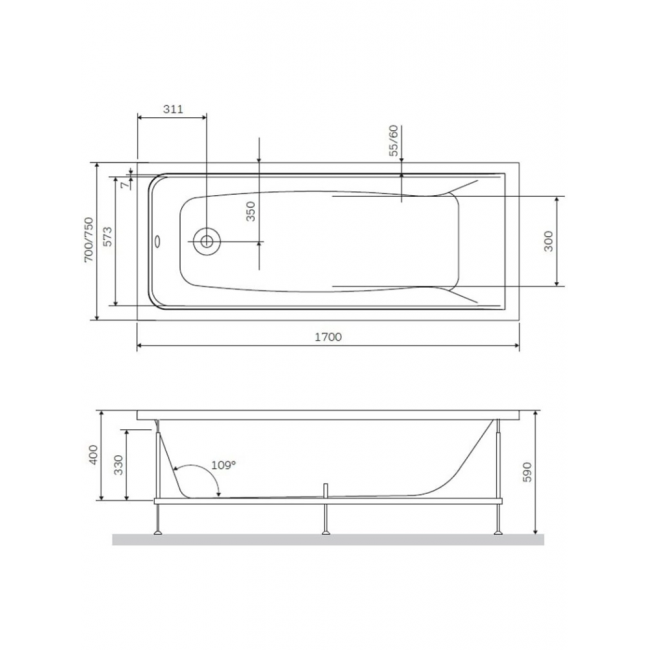 Каркас для ванны AM.PM Gem 170x75 W90A-170-075W-R серый купить с доставкой. 100% Оригинал. Гарантия!