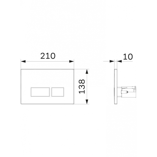 Кнопка смыва бренда AM.PM коллекции Pro S создана в выверенном дизайне. Пневматическое управление смывом воды. Размер изделия (Ш/Г/В): 210x12x138 мм. Цвет: хром. Форма кнопок: прямоугольные. Материал: пластик.