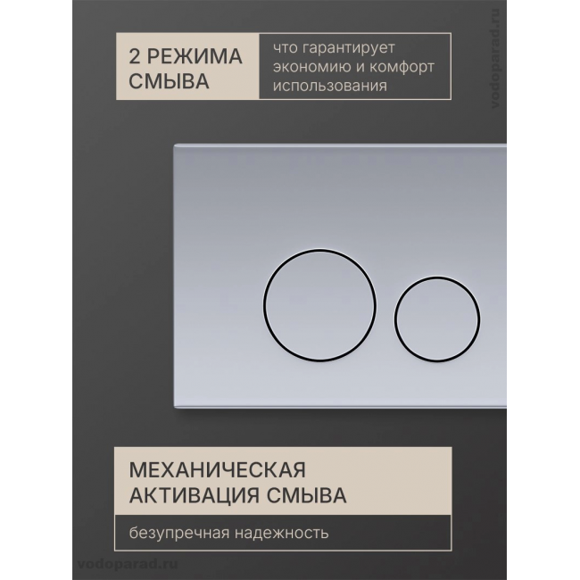 Панель смыва Aquatek обеспечивает два режима слива воды, что гарантирует экономию и комфорт использования. Она совместима с бачками Aquatek, Geberit Duofix Sigma UP720 и UP320 и предназначена для механического управления как подвесными, так и напольными унитазами. Надежность и элегантный дизайн делают смывную панель Aquatek идеальным выбором для современного дома.