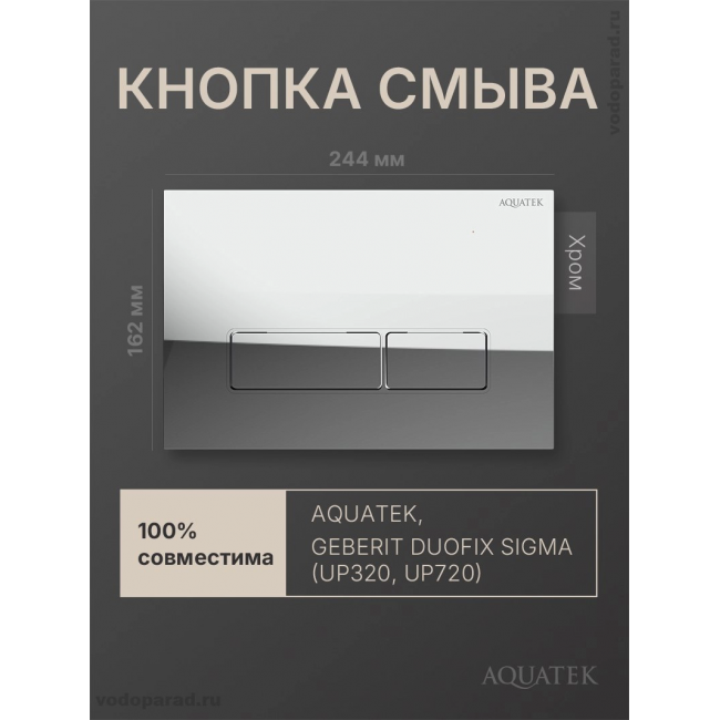 Кнопка смыва Aquatek KDI-0000062 хром глянец, ободок хром купить с доставкой. 100% Оригинал. Гарантия!