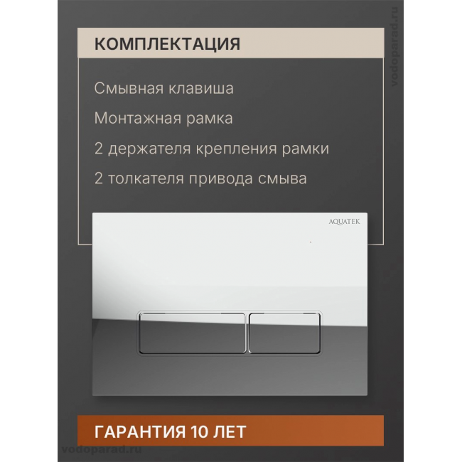 Смывная панель Aquatek представляет собой стильное и функциональное решение для вашей ванной комнаты, соответствует современным тенденциям и добавит изысканности любому интерьеру. Благодаря использованию высококачественных материалов, таких как прочный ABS-пластик, эта модель не только привлекательна внешне, но и долговечна.