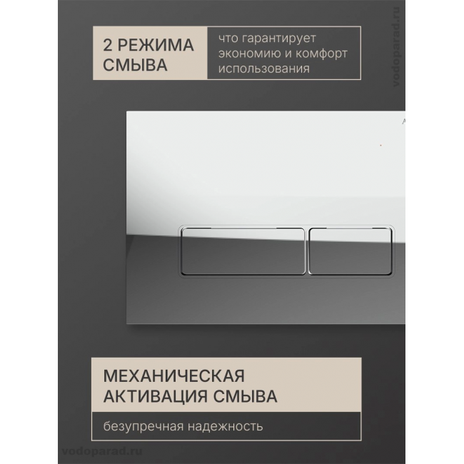 Панель смыва Aquatek обеспечивает два режима слива воды, что гарантирует экономию и комфорт использования. Она совместима с бачками Aquatek, Geberit Duofix Sigma UP720 и UP320 и предназначена для механического управления как подвесными, так и напольными унитазами. Надежность и элегантный дизайн делают смывную панель Aquatek идеальным выбором для современного дома.