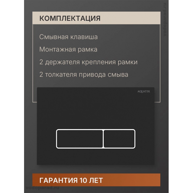 Смывная панель Aquatek представляет собой стильное и функциональное решение для вашей ванной комнаты, соответствует современным тенденциям и добавит изысканности любому интерьеру. Благодаря использованию высококачественных материалов, таких как прочный ABS-пластик, эта модель не только привлекательна внешне, но и долговечна.