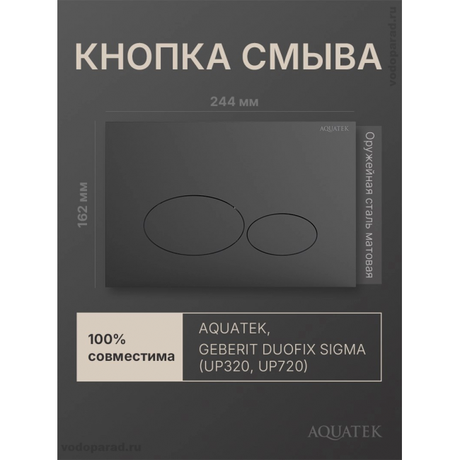 Кнопка смыва Aquatek KDI-0000075 оружейная сталь матовая купить с доставкой. 100% Оригинал. Гарантия!