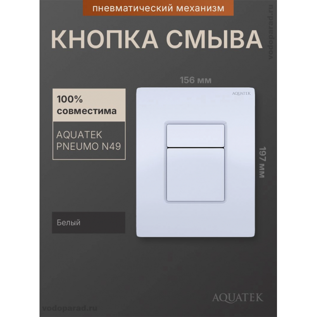 Кнопка смыва Aquatek Pneumo N PNN-0000001 белая купить с доставкой. 100% Оригинал. Гарантия!