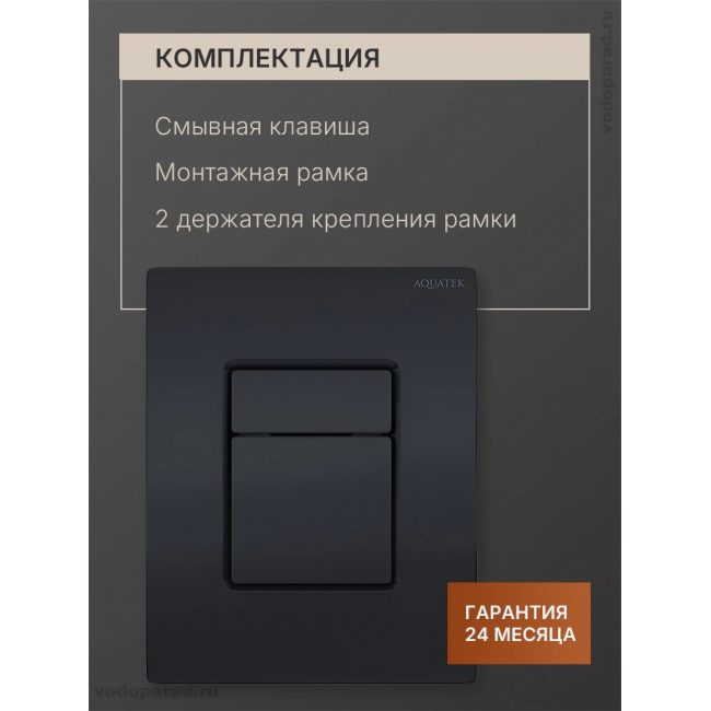 - Двойной регулируемый режим смыва – клавиша смыва Aquatek обеспечивает удобство использования и экономит ресурсы, позволяя контролировать расход воды