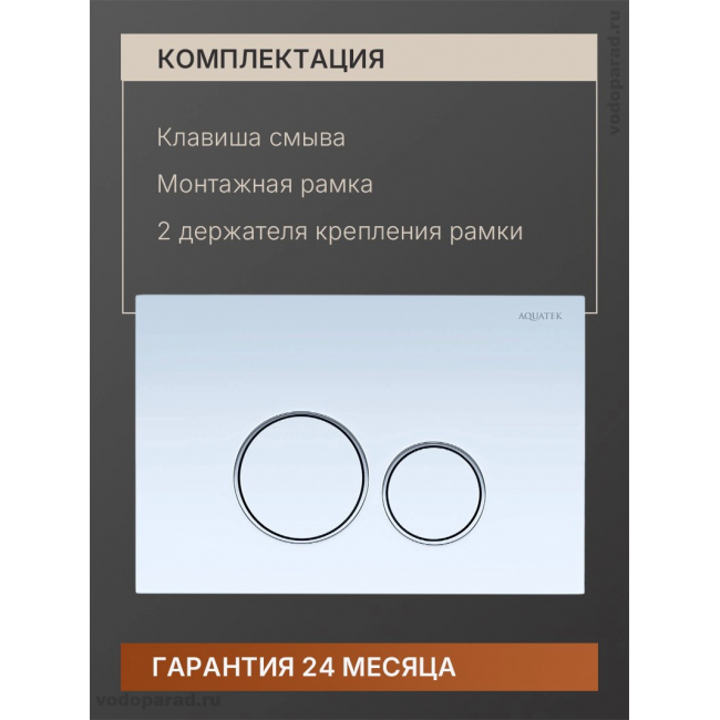 - Двойной регулируемый режим смыва – клавиша смыва Aquatek обеспечивает удобство использования и экономит ресурсы, позволяя контролировать расход воды