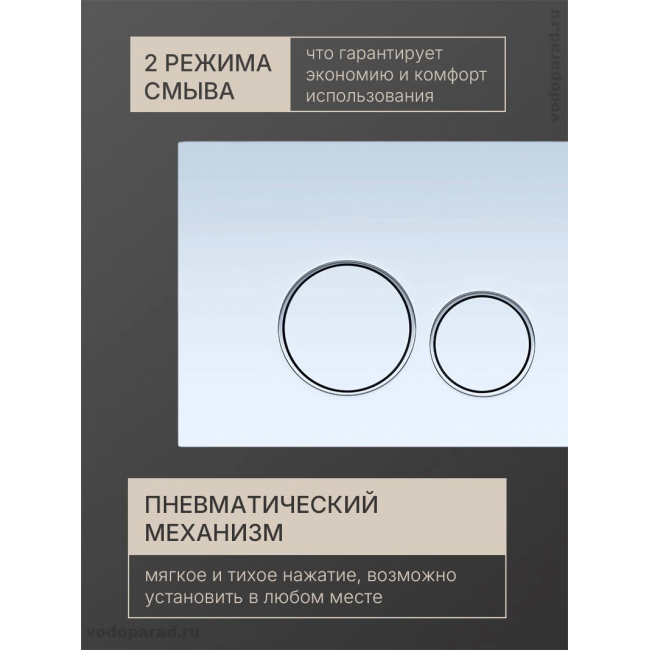 - Бесшумная работа – мягкий спуск воды без резких звуков, благодаря пневматическому механизму нажимается более плавно и тихо