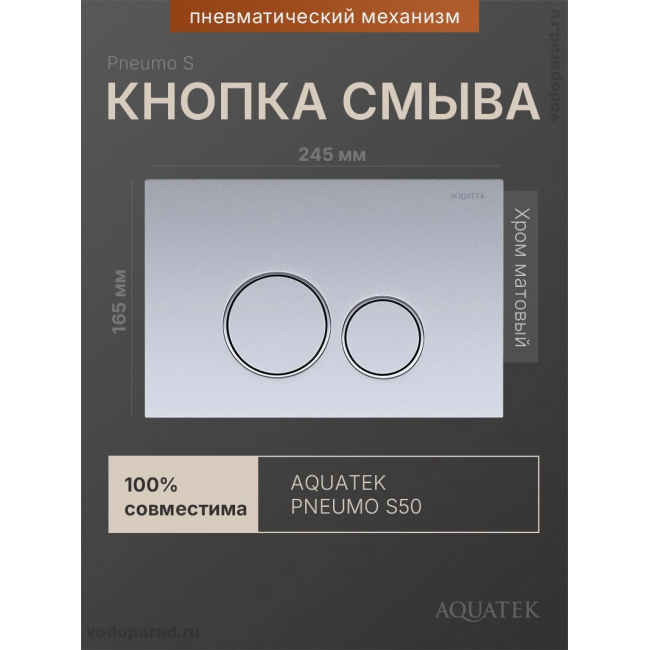 Кнопка смыва Aquatek Pneumo S PNS-0000013 хром матовый купить с доставкой. 100% Оригинал. Гарантия!