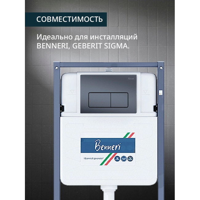 Панель смыва Benneri совместима только с инсталляциями бренда Benneri и с инсталляциями бренда Geberit серии Sigma.