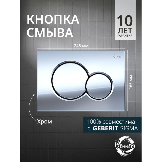 Кнопка смыва Benneri Mona BE.019B хром купить с доставкой. 100% Оригинал. Гарантия!
