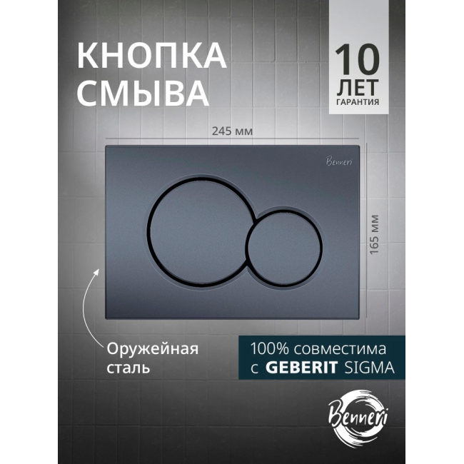 Кнопка смыва Benneri Mona BE.019C-1 оружейная сталь купить с доставкой. 100% Оригинал. Гарантия!