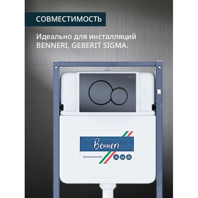 Панель смыва Benneri совместима только с инсталляциями бренда Benneri и с инсталляциями бренда Geberit серии Sigma.