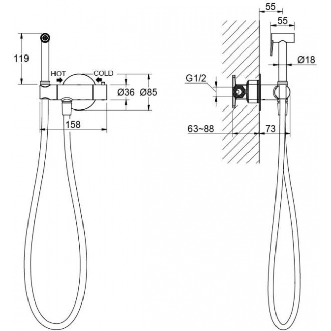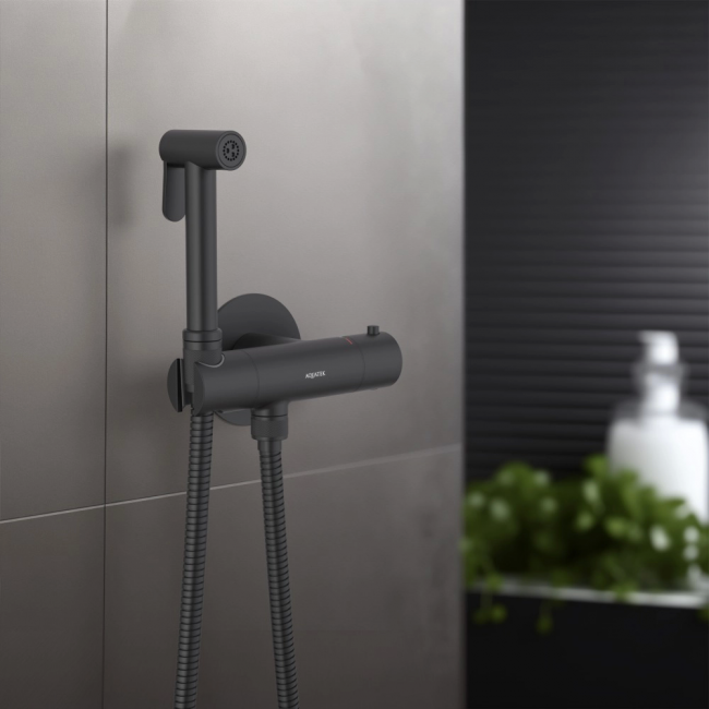 Комплект для гигиенического душа термостатический встроенный (смеситель + гигиеническая лейка + шланг) AQUATEK, матовый черный AQ1027MB ОБЕРОН купить с доставкой. 100% Оригинал. Гарантия!
