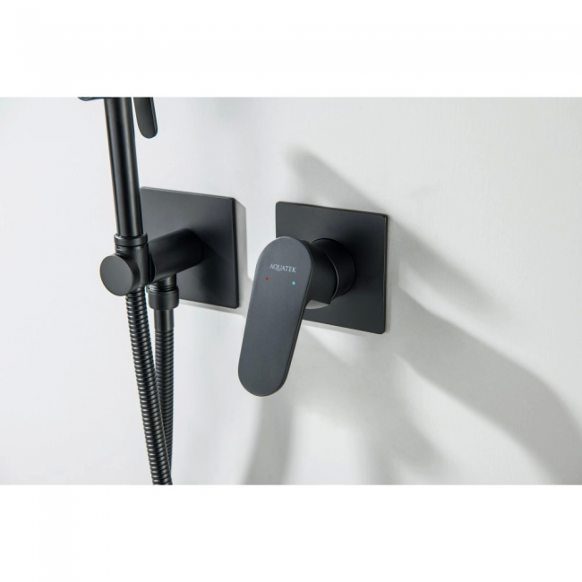 Комплект для гигиенического душа встроенный 2 отв. (смеситель + гигиеническая лейка + шланг) AQUATEK, матовый черный AQ1220MB ОБЕРОН купить с доставкой. 100% Оригинал. Гарантия!
