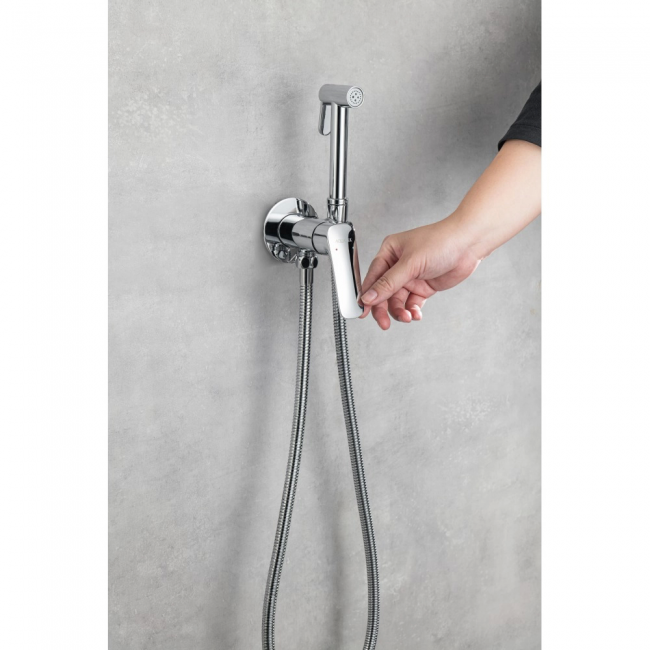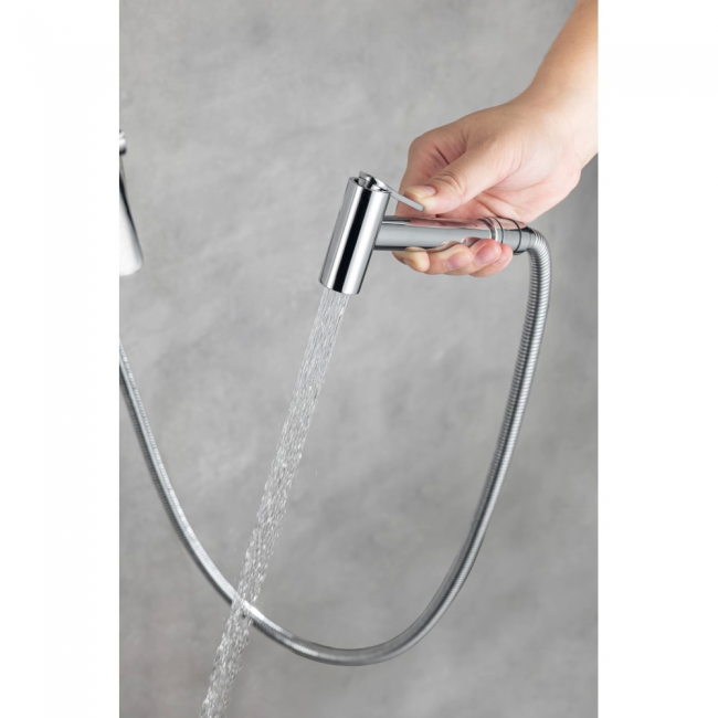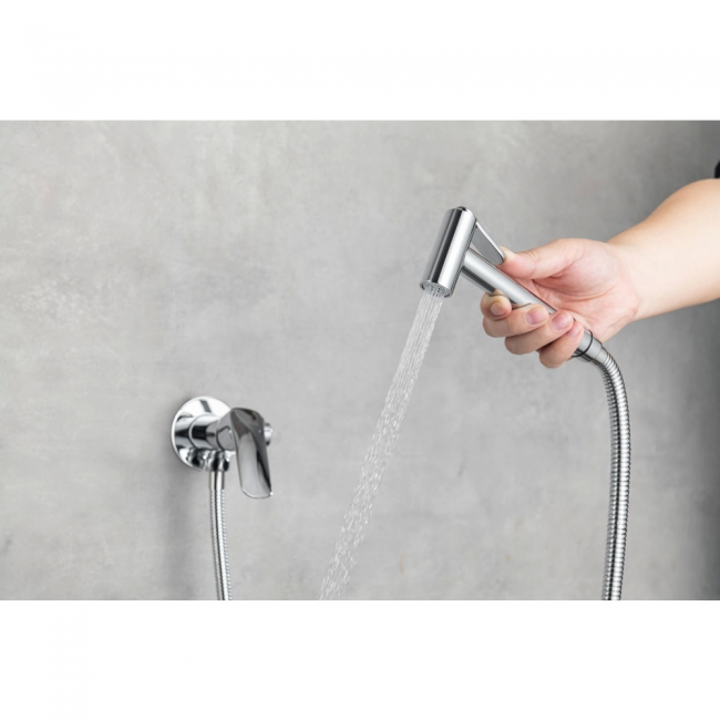 | Комплектация | 1. Смеситель2. Шланг для лейки 120 см3. Гигиеническая лейка оснащена нажимным механизмом для остановки потока воды4. Декоративная накладка/отражатель из нержавеющей стали5. Монтажный комплект |